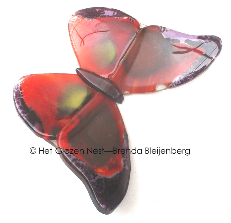 Artikelnummer: T 98 OverzichtRode vlinder met zware randen van glas