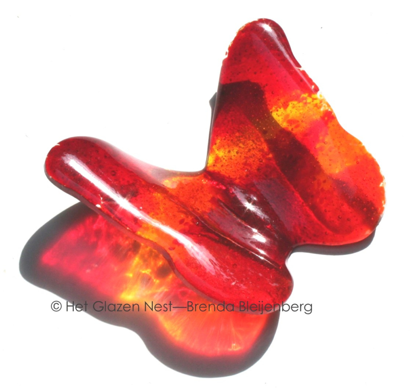 Vlinder in rood en oranje glas