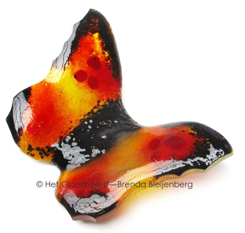 Artikelnummer: H 3 OverzichtVlinder in oranje glas met zwarte randen