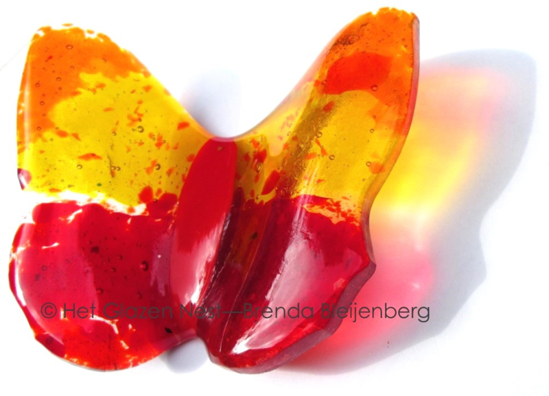 Deze bijzondere vlinder van glaskunst is door gedenkkunstenaar Brenda Bleijenberg ontworpen en gemaakt in de glas techniek fusing. (glasversmelting). De vlinder is individueel en met zorg en aandacht gemaakt en is daardoor uniek en eenmalig. Er kan nooit een 2e exemplaar identiek worden gemaakt.