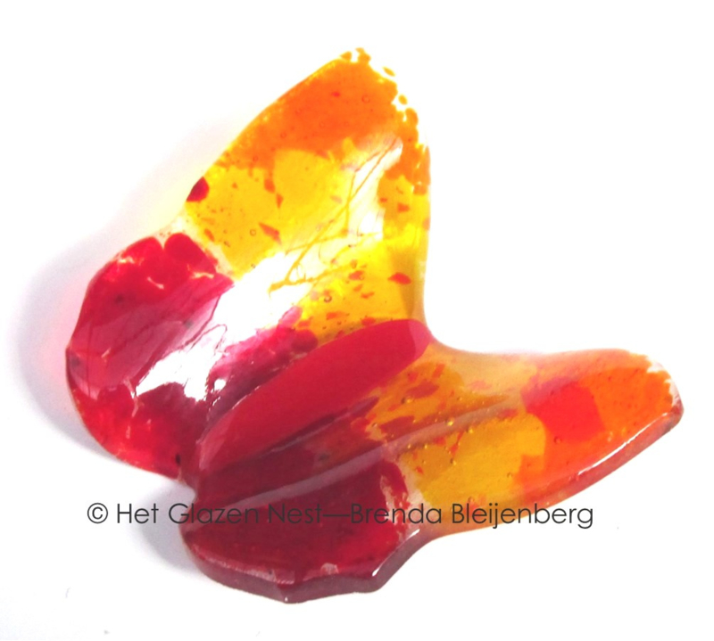 Artikelnummer: plm 54 OverzichtGlaskunst vlinder in oranje en rode kleuren