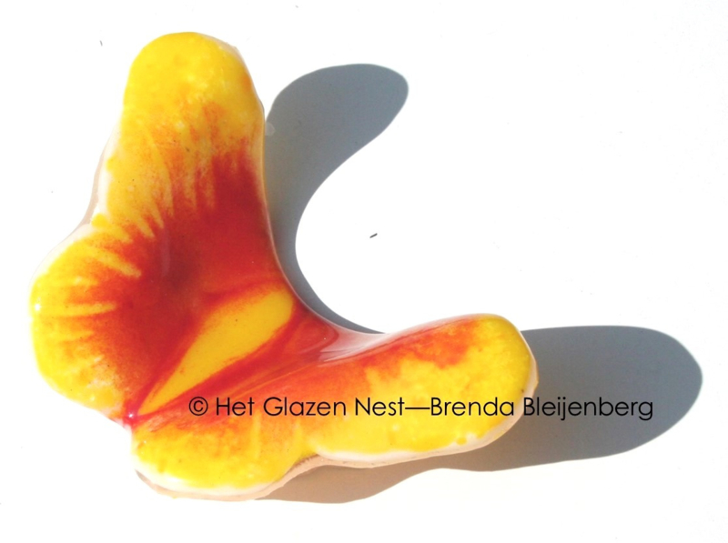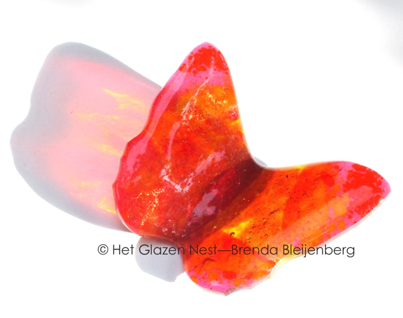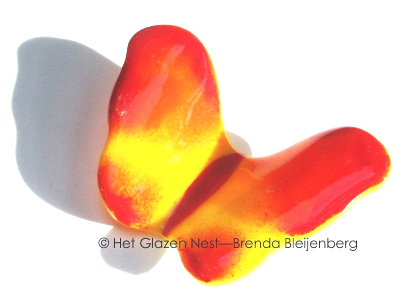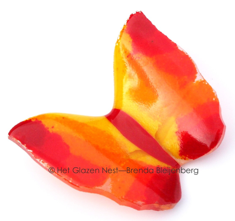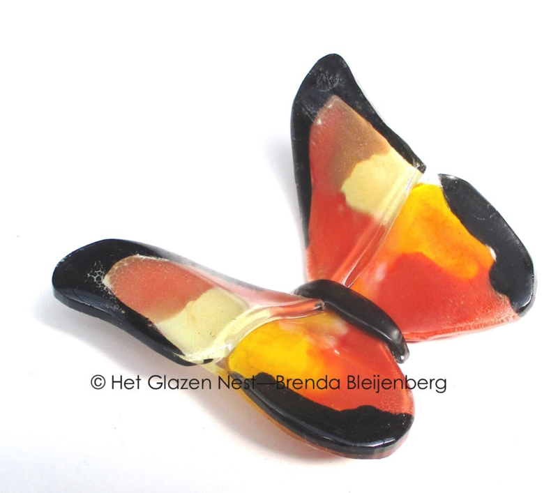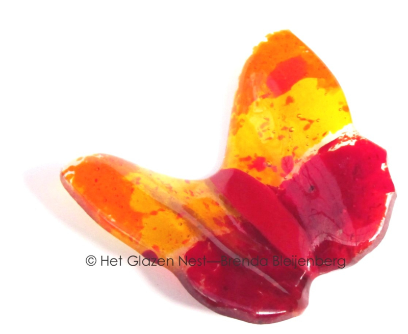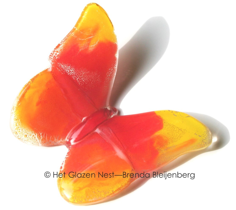 Een vlinder in deze kleuren kan veel verschillende vormen en uitvoeringen krijgen. Klein of groter, fel gekleurd of juist heel zacht van tint, licht doorlatend of opaal. Alles is mogelijk.