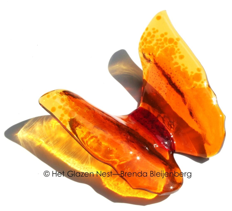 Glazen vlinder in bijzonder oranje kleurenGlazen vlinder in bijzonder oranje kleuren